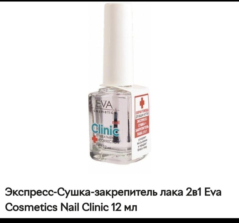 ❗Единственное покрытие, которое работает! С Экспресс- сушкой лак высыхает моментально и имеет шикарный блеск! Обычный лак после нанесения экспресс- сушки выглядит как покрытие гель лаком! И носится 2-3 недели.Проверенно! ❗Экспресс-сушка + закрепитель лака 2 в 1 Clinic ЕVA cosmetics сокращает время высыхания верхнего слоя лака, прекрасно закрепляет маникюр и придаёт блеск. Освежает цвет лака и продлевает его стойкость, защищая от вредного воздействия бытовой химии, длительного контакта с водой. Средство можно наносить на свежеокрашенные ногти и уже через пару минут маникюр будет готов. Подходит к любому типу ногтей. Содержит компоненты, которые препятствуют пересыханию кутикулы.