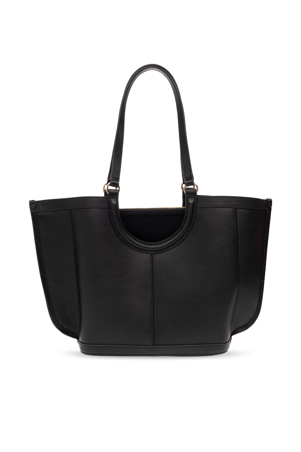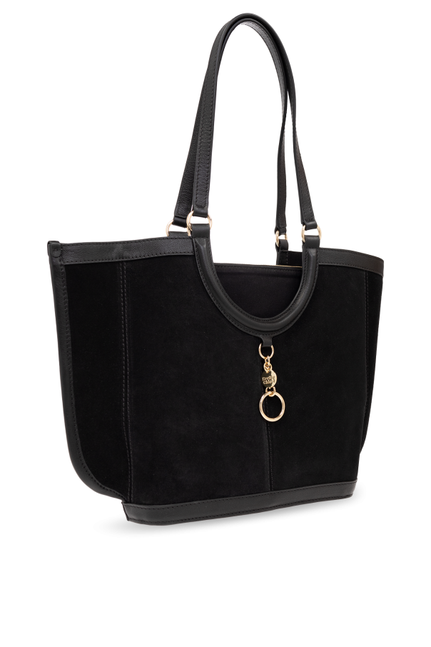 Black ‘Mara’ shopper bag from See By Chloe. Made from suede and calf leather, this design showcases gold-tone pendants with the brand\'s logo on the front, two handles, gold-tone metal hardware and one zipped compartment inside.
