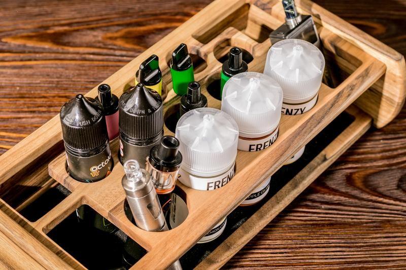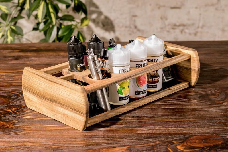 Любите парить? Не можете представить себя без вайпа в руке? Или Вы в поисках подарка для человека, который парит или планирует начать этим заниматься? В таком случае у нас отличные для Вас новости - мы сделали для Вас крутой органайзер, который идеально подойдет для любого вейпера - как начинающего, так и профессионала. Оптимальный размер, максимально удачно подобранные размеры отверстий под наиболее популярные стандартные размеры баночек для жидкостей, большое место для хранения самого аппарата, а также место для различных аксессуаров - ножниц, салфеток и прочих мелочей, которые так важны в этом деле. Мы постарались сделать небольшой и, в то же время, максимально компактный органайзер, в котором у Вас поместиться все, и он не будет занимать много места на рабочем столе или дома возле монитора.