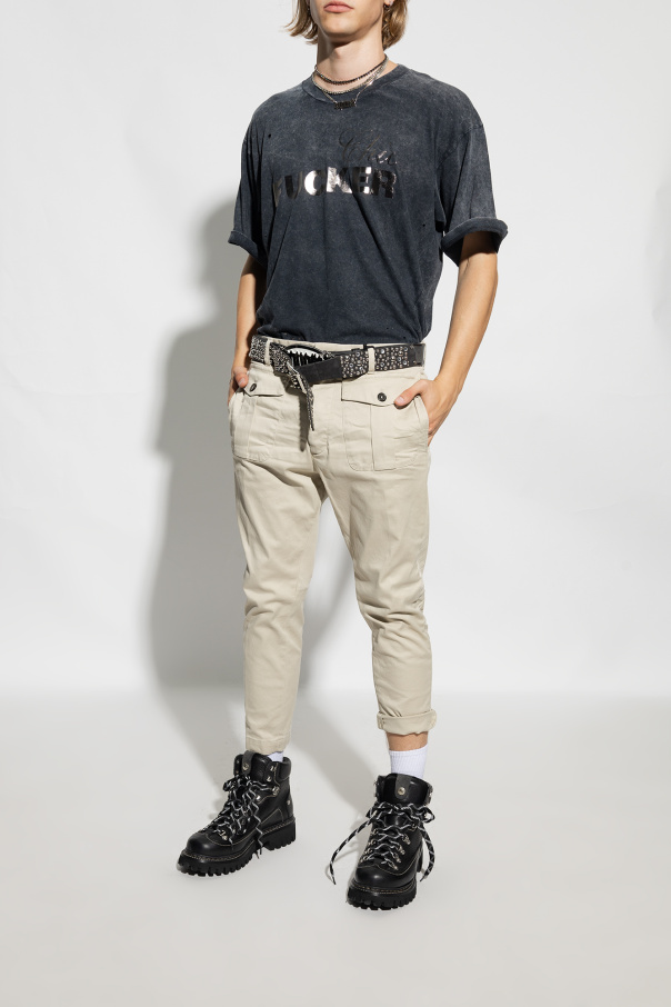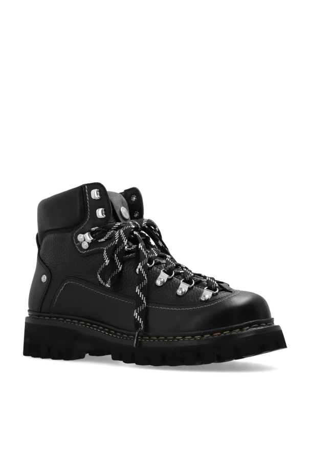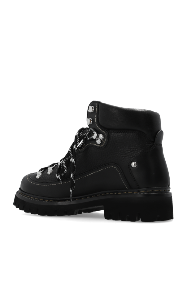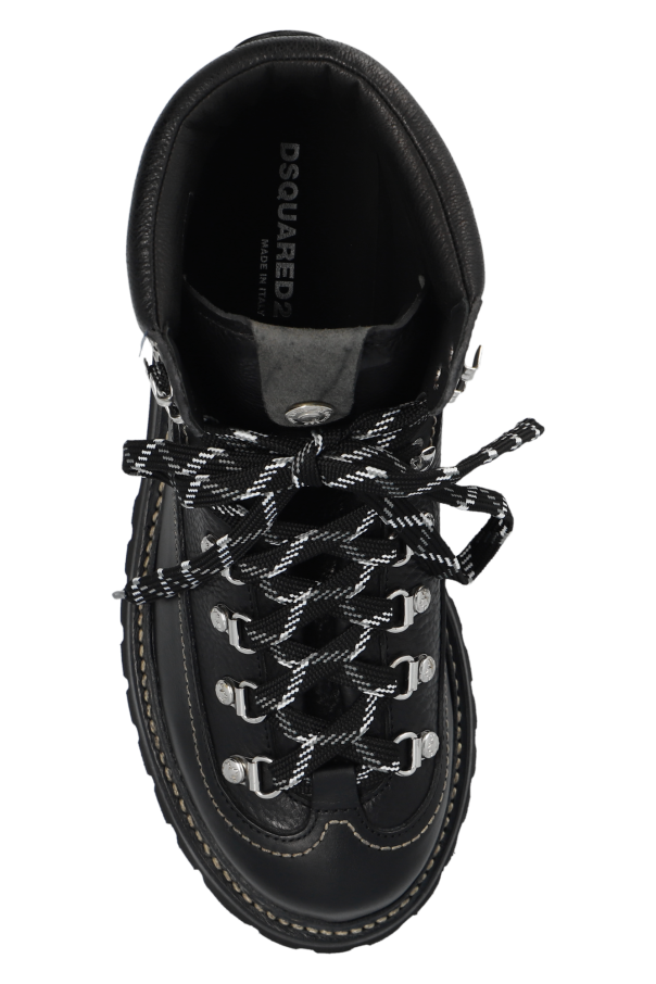 Black ‘Canadian’ ankle boots from Dsquared2. Made of leather, this lace-up model sits on a black rubber sole and features silver-tone metal hardware.