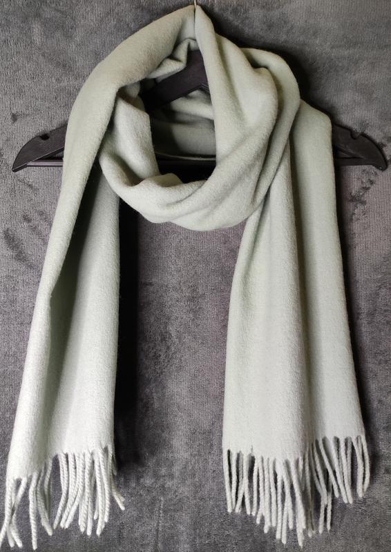 Палантин нежного мятного цвета, низ с бахромой. Теплый, мягкий и приятный на ощупь.