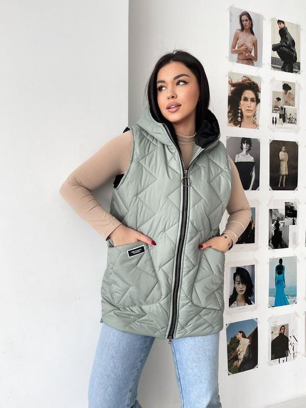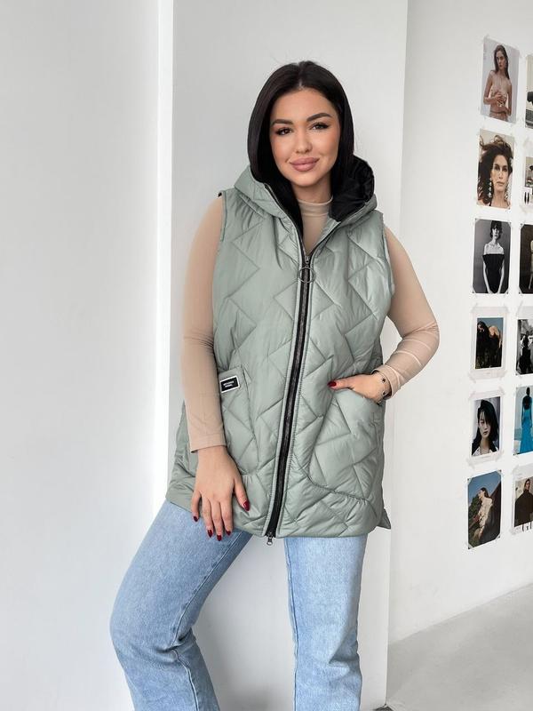 Жилеточка має ззаді подовження яке дуже круто гармонує з накладним карманом😍😍😍