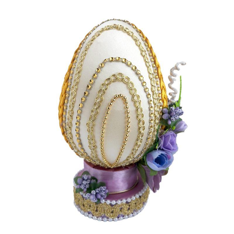 Я предлагаю необычное украшение к Светлому празднику Пасхи – пасхальные яйца. Красивый декор – это важная деталь интерьера, которая наполнит дом особой атмосферой. Благодаря праздничному декору интерьер наполняется праздничным настроением. Основа яйца - пеноаласт, обтянутый тафтой и атласной тканью, украшенный декором из бусин, тесьмы, стразами и цветами.