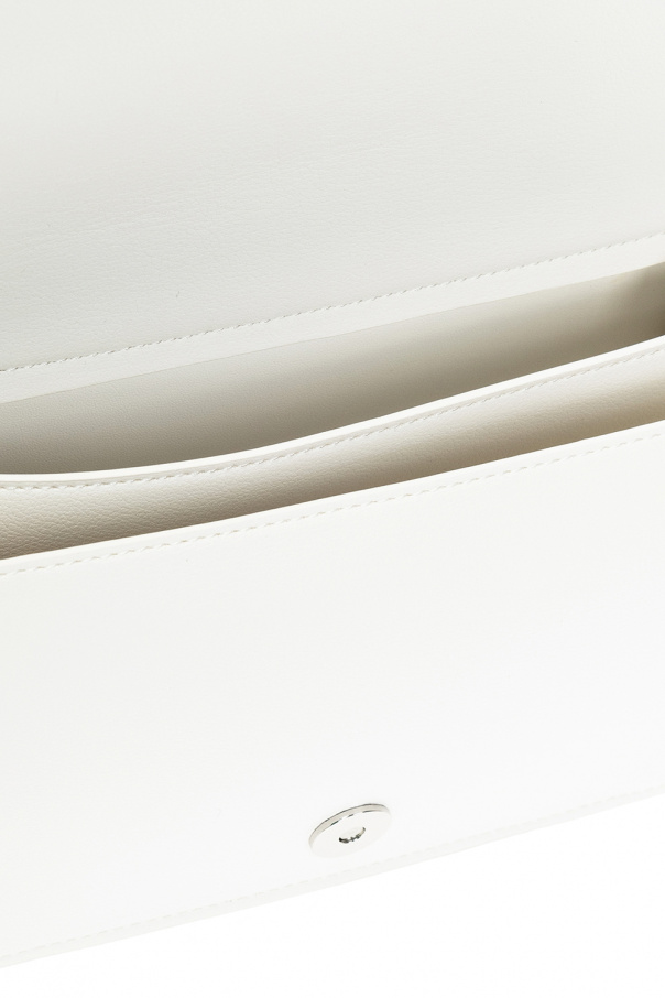 White shoulder bag from Versace Jeans Couture. Crafted from faux-leather, this design fastens via a magnetic snap and features a perforated logo on the front, a detachable half-round handle, a detachable, long chain strap, silver-tone metal hardware and two separate internal compartments.