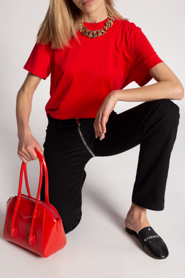 Black ‘Bedford’ slides from Givenchy. Crafted from lamb leather, this model sits on a black leather sole and showcases an elastic band with the brand\'s logo in white across the upper.