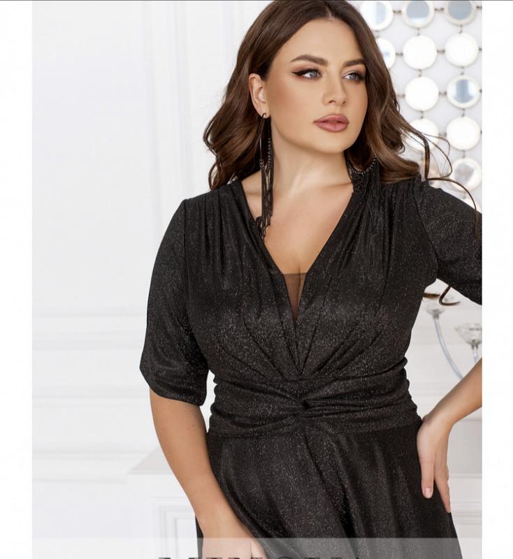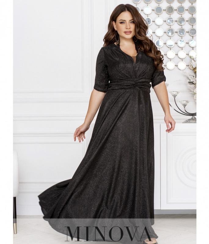 Романтична сукня великого розміру з глибоким декольте. Застібається на блискавку, вшиту по спинці. Рукава та основна частина - з м'якою підкладкою та напівпрозорою верхньою тканиною. Кишень немає.