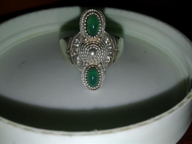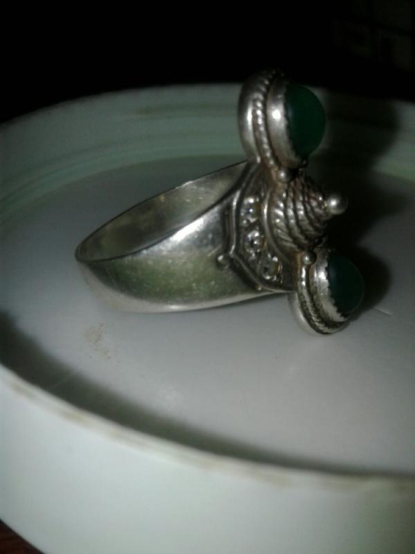 Красивое заводское кольцо из серебра 925 пробы, с зелеными и белыми вставками. размер 19 -20