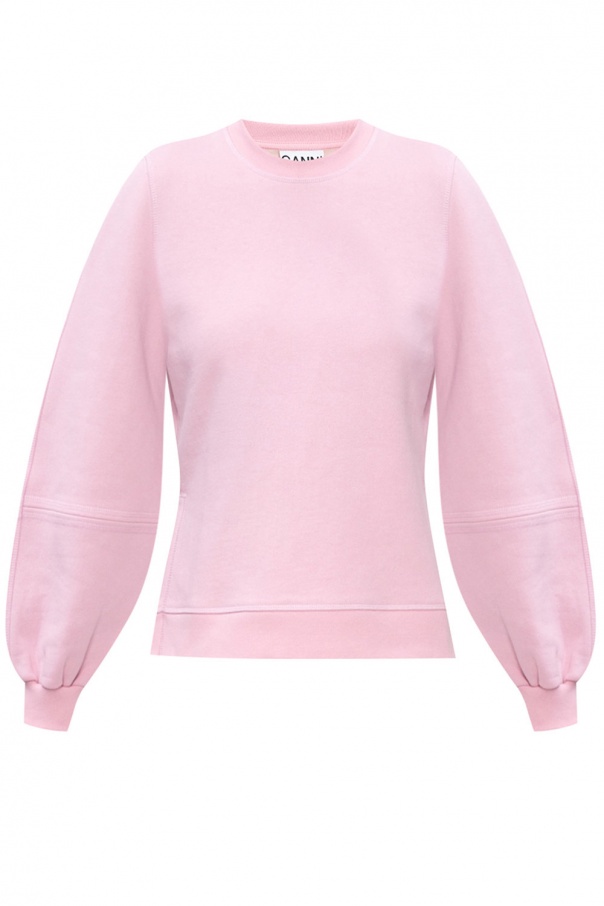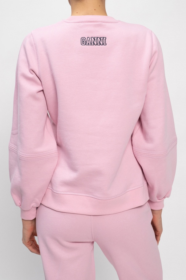 Pink crewneck sweatshirt from Ganni. Embroidered with the brand\'s logo in black on the back, this style is complete with side vents and rib-knit finishes at the collar, bottom hem and cuffs.
