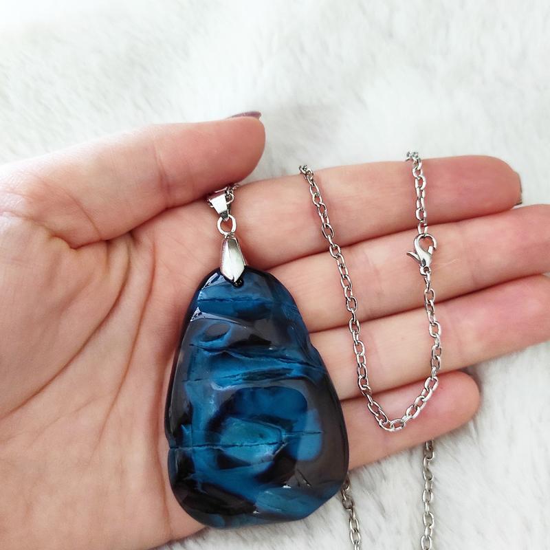 Кулон из натурального камня Черно-голубой Агат в природной форме.