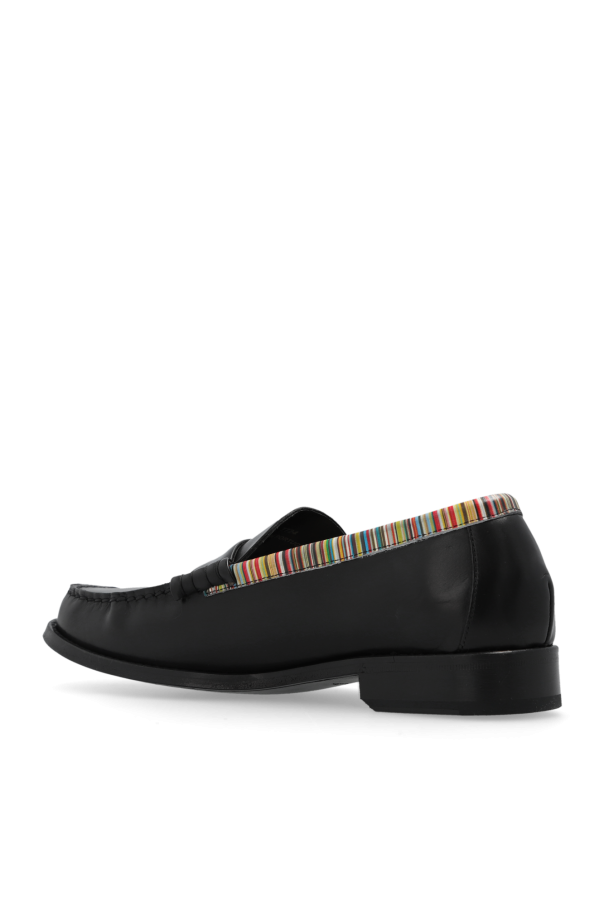 Black ‘Cassini’ loafers from Paul Smith. Made of leather, this pair features a multicolored pinstripe pattern and black leather sole.