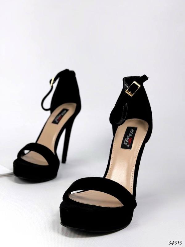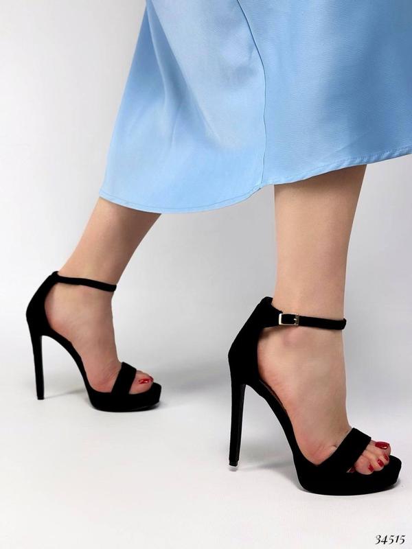 Матеріал:Штучна замша ,Висота каблука:Дуже високий ,Вид:Із закритою п'ятою , З відкритим носком ,Застібка:Ремінець ,Сезон:Літо ,Стиль:Класичний ,Тип підошви:Каблук , Шпилька ,Довжина устілки:26 см , 26,5 см ,Опис