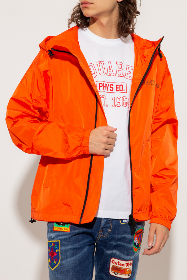 Orange track jacket from Dsquared2. Fastened with a two-way zipper, this style features a drawcord-adjustable hood and hem, two slip pockets and a printed black logo on the front.
