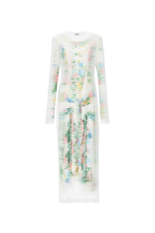 Multicoloured two-layer dress from Loewe. Embroidered with the brand\'s monogram at the back, this style features long sleeves and ribbing on the round neck.