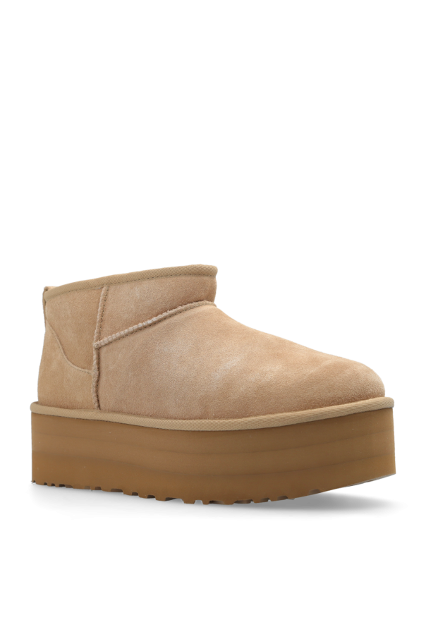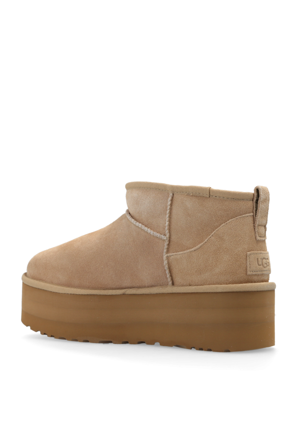 Beige ‘Classic Ultra Mini Platform’ snow boots from UGG. Made of Twinface sheepskin, this pair features a logo patch at the back, 100% recycled textile binding, UGGplush™ lining and beige Treadlite by UGG™ outsole crafted from EVA.