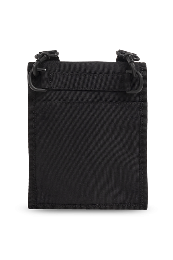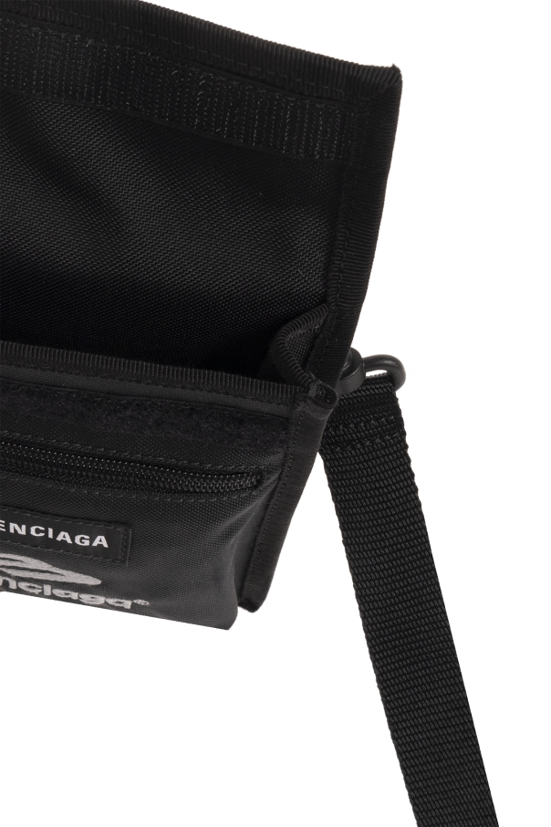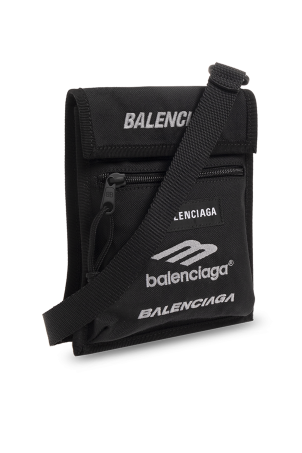 Black pouch on a strap from Balenciaga. Embroidered with a light grey logo, this item features a velcro closure, an adjustable shoulder strap and one internal compartment.