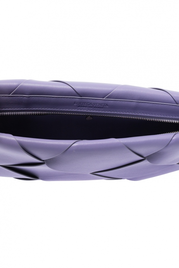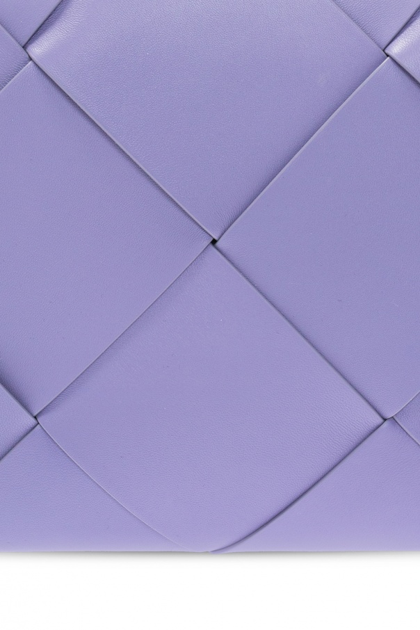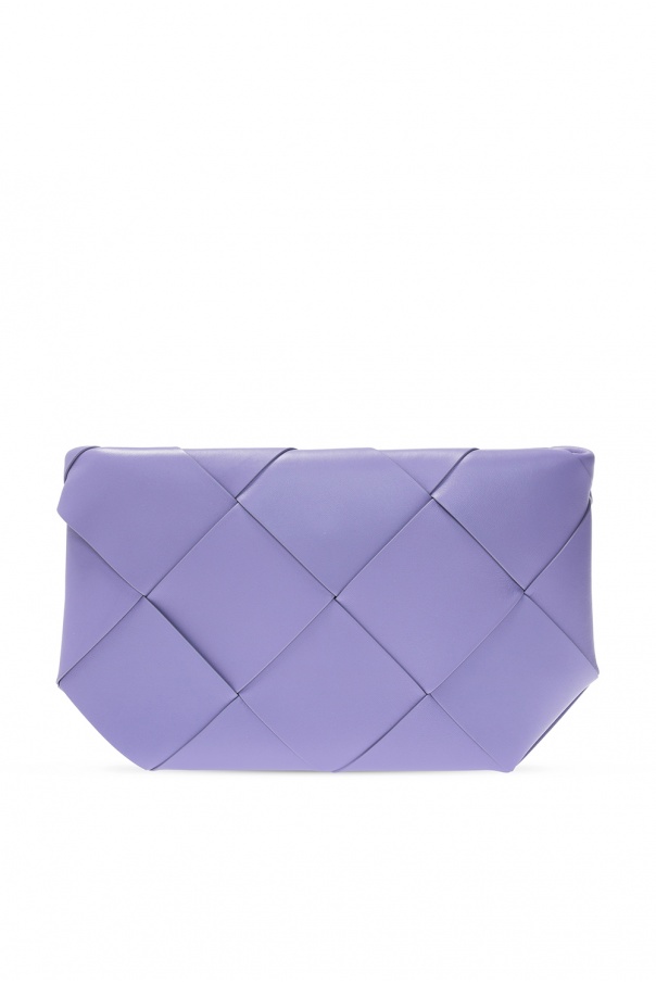 Purple clutch from Bottega Veneta. Crafted from leather with the Intrecciato weave, this design features a zip fastening, silver-tone metal hardware and one internal compartment with one snap pocket.