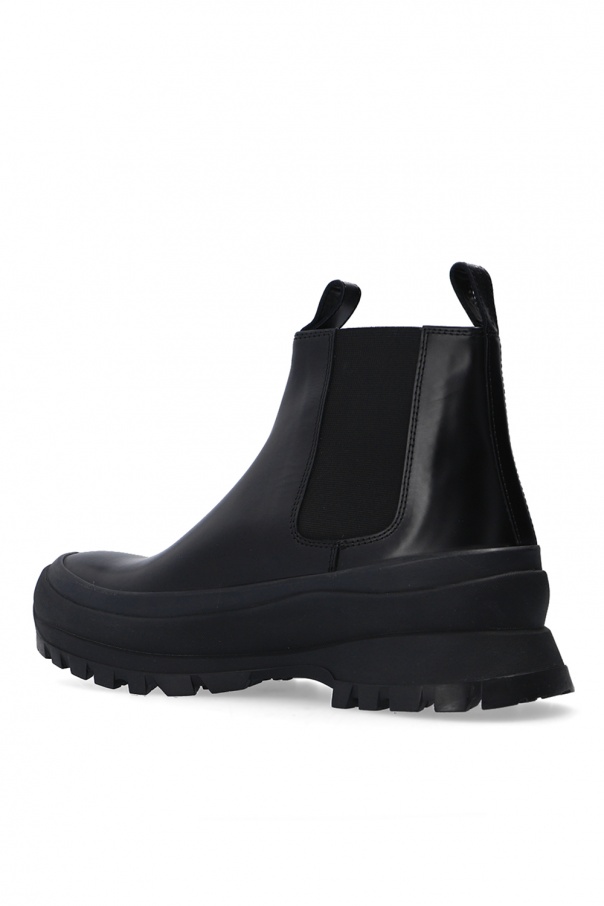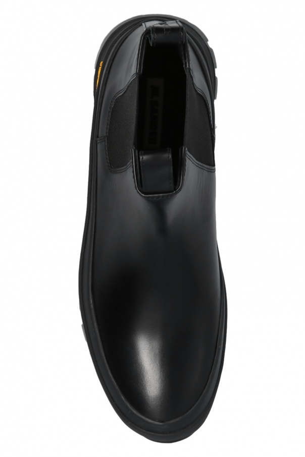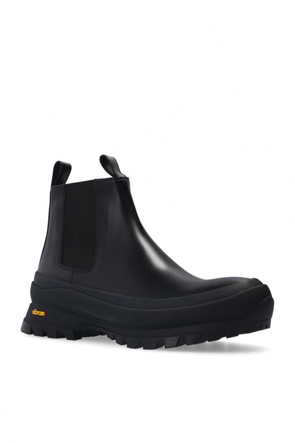 Black Chelsea boots from Jil Sander. Crafted from cal leather, this ankle boot is set on a black rubber sole with Vibram technology, which is being used in mountaineering footwear,