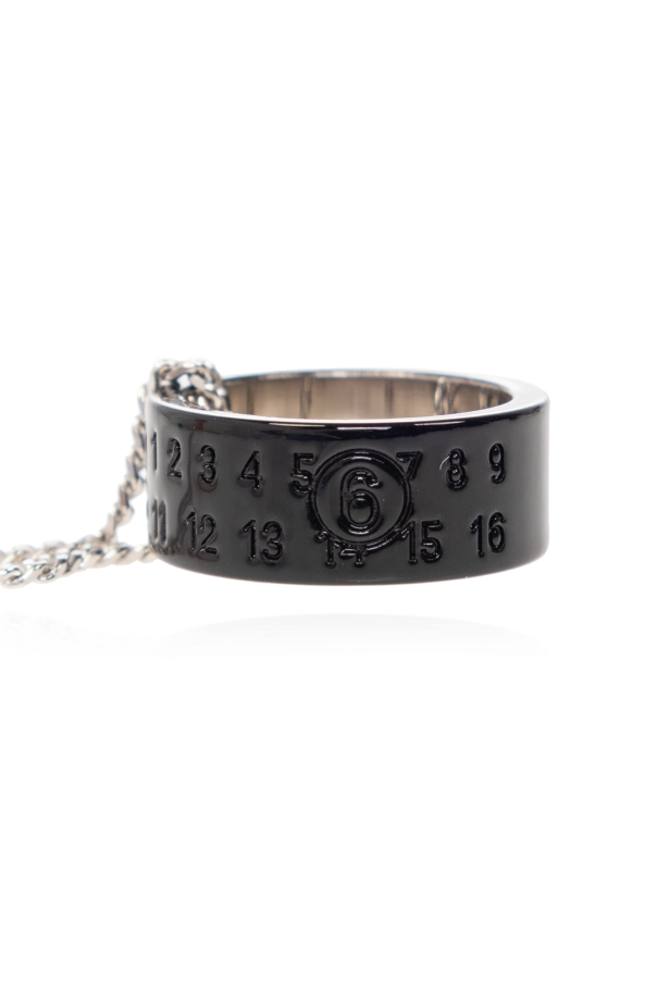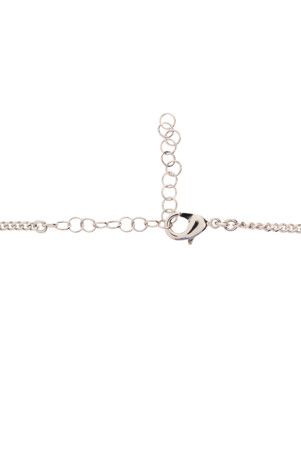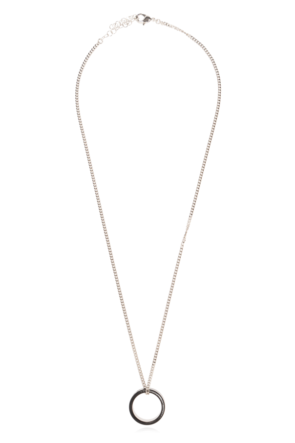Silver-tone necklace from MM6 Maison Margiela. Made from brass, this item fastens with a lobster clasp and showcases a black pendant with an engraved logo.