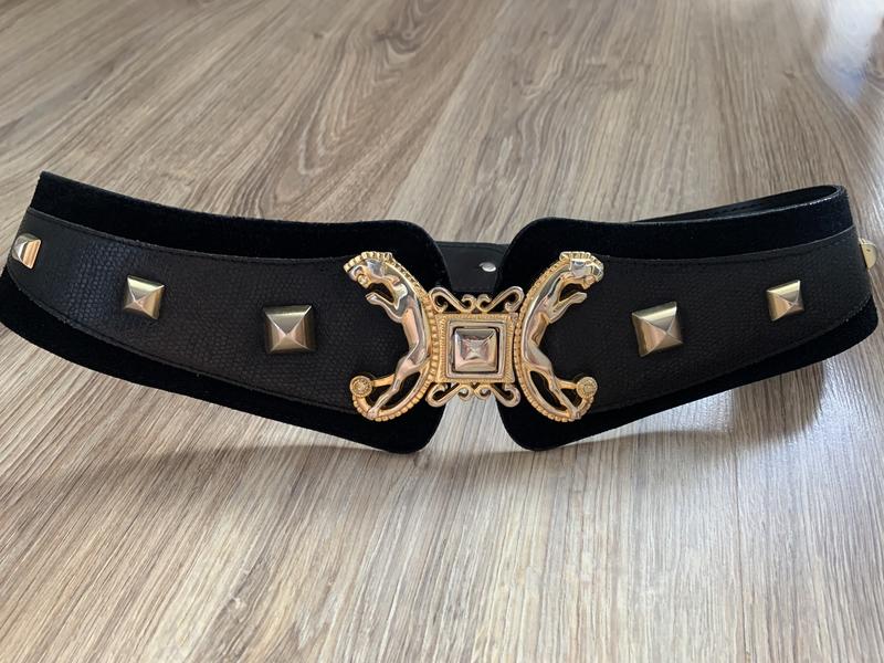 Восхитительный винтажный кожаный/замшевый ремень с шикарной пряжкой, в красивом состоянии.