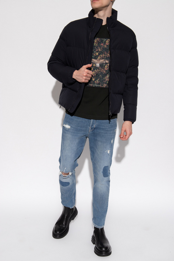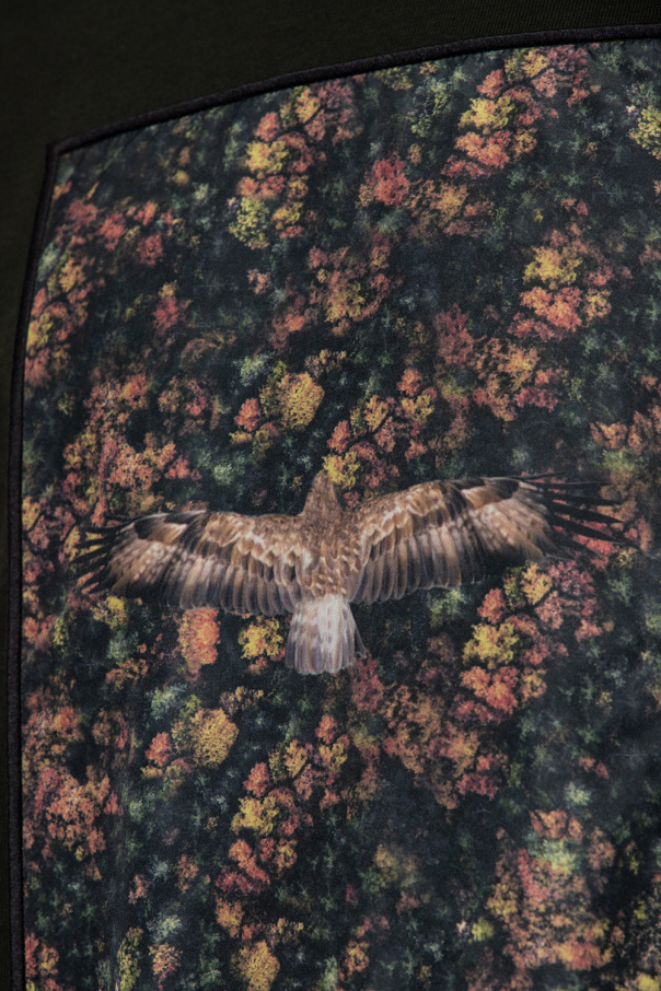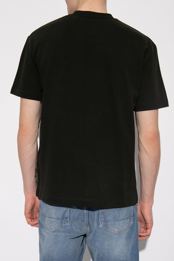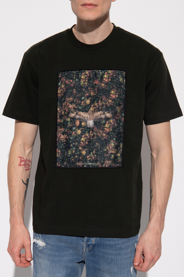 Dark green crewneck T-shirt from Emporio Armani. Crafted from cotton, this style features short sleeves, an elasticated collar and a colourful fabric appliqué with the brand\'s logo.