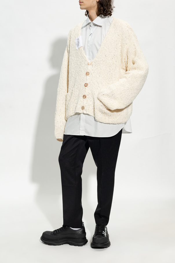 Black platform sneakers from Alexander McQueen. Crafted from leather, this lace-up pair is complete with a white logo and black rubber sole.