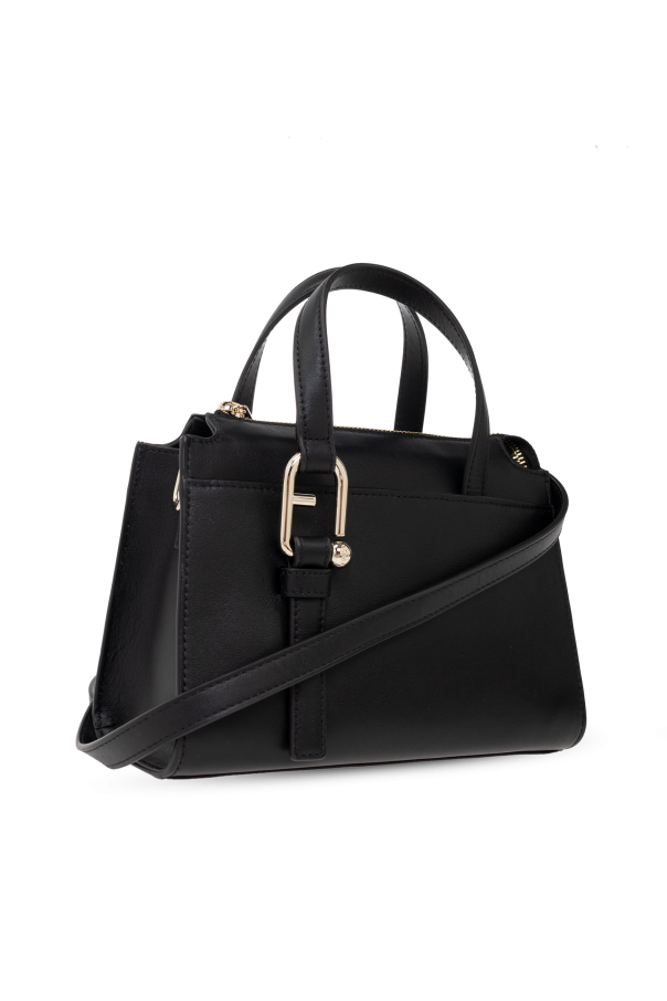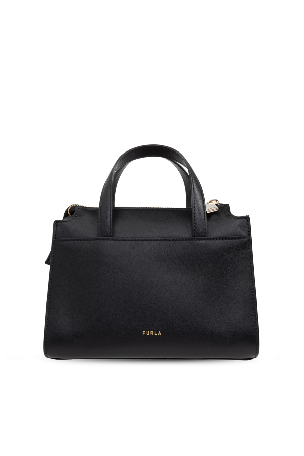 Introducing the Furla Nuvola Small Shoulder Bag, a paragon of sophistication and versatility. Crafted from premium 100% leather with an inner lining of the finest material, this exquisite accessory encapsulates luxury and durability. Its classic black hue and rectangular silhouette with gently rounded corners exude timeless elegance, making it an ideal complement to both casual and formal attire. The bag features two robust, short handles and an adjustable, detachable shoulder strap, offering multiple carrying options for optimum comfort and style. The presence of golden hardware, including protective feet, buckles, clasps, and delicate decorative elements, infuses an air of opulence. A secure zippered closure at the top ensures the safety of your belongings, while the interior is thoughtfully designed with a lining, a zippered pocket, and a slip pocket, facilitating superior organization and accessibility. The subtle logo of the designer, Furla, adorning the front, adds a touch of prestige, highlighting the bag\'s high-end pedigree. The meticulous craftsmanship and quality materials are evident upon close inspection, asserting this bag\'s status in the realm of luxury accessories. Why Purchase This Product? Constructed from 100% high-quality leather for lasting use. Versatile carrying options with its short handles and an adjustable, detachable shoulder strap. Enhanced with elegant golden hardware for a touch of sophistication. Secure storage with a zippered main compartment, including an inner zip and slip pockets for organized essentials. Effortlessly complements a wide range of outfits, for both everyday and formal occasions.