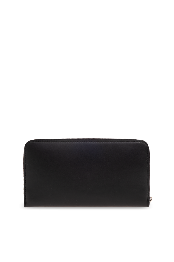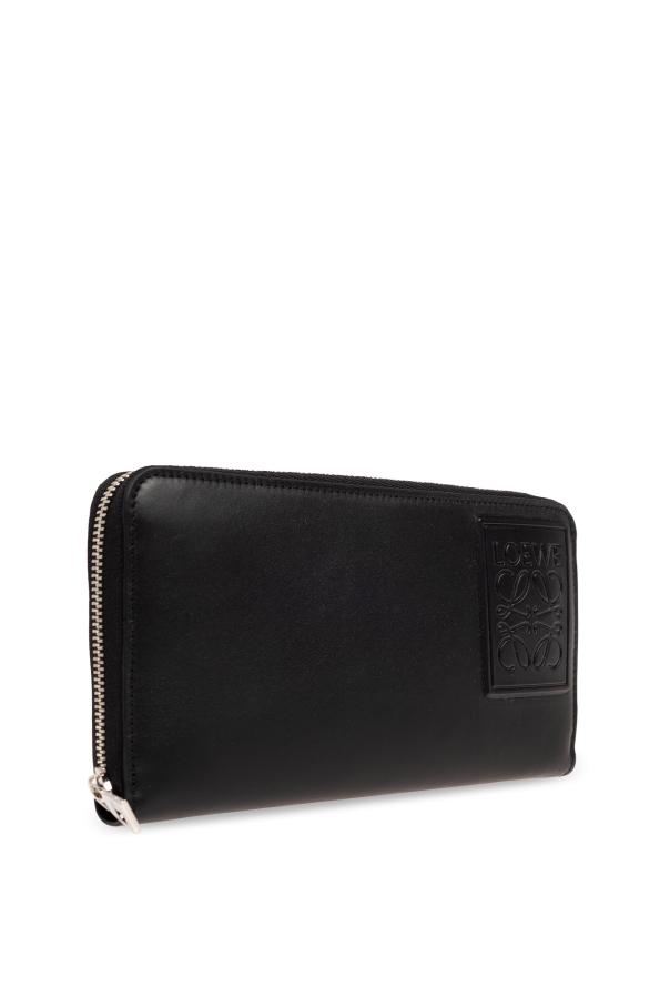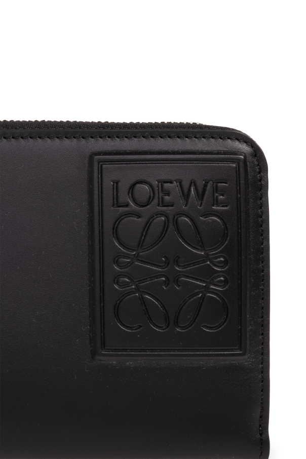 Black wallet from Loewe. Made from calf leather, this item fastens via a zip and showcases a logo-embossed application on the front as well as two bill compartments, one zip pocket, two slip pockets and twelve card slots inside.