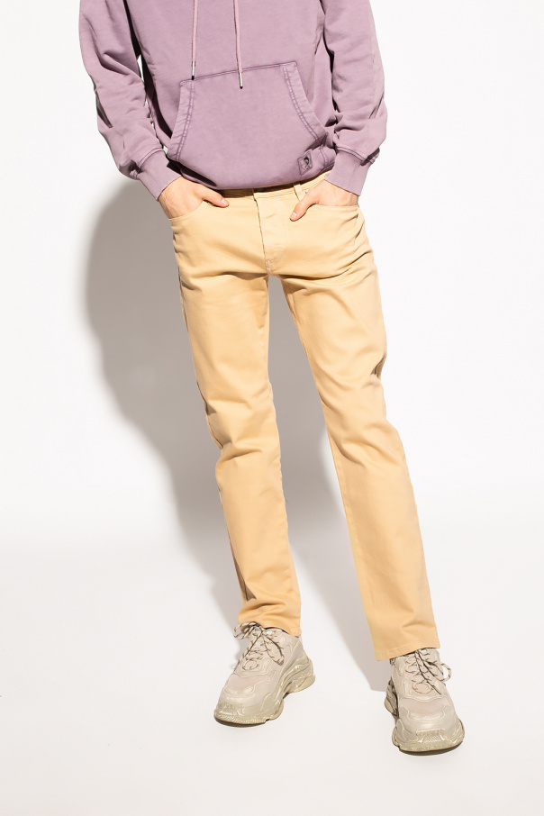 Light brown ‘D-Mihtry’ jeans from Diesel. Fastened with buttons, this straight leg design is complete with two front pockets and two back pockets.