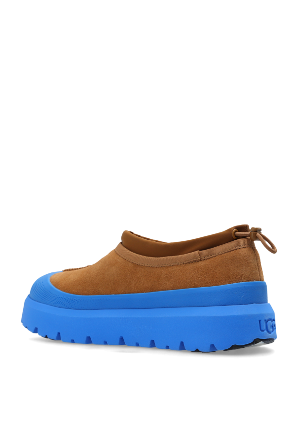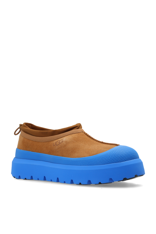 Introducing the Tasman Weather Hybrid shoes from the exclusive collection of the renowned brand UGG. These shoes exemplify a harmonious blend of modern aesthetics and functional design, making them an indispensable addition to any discerning wardrobe. Crafted with meticulous attention to detail, the Tasman Weather Hybrid features a low-profile silhouette that gracefully falls below the ankle, complemented by a rounded toe. The upper is constructed from premium brown suede, exuding sophistication and timeless elegance, while the thick, textured rubber sole in a striking blue hue offers both durability and a distinctive touch. Adorned with the iconic UGG logo on the side and insole, these shoes eschew traditional laces in favor of a convenient rear pull-tab for effortless wear. The interior is luxuriously lined with a plush woolen material, ensuring unparalleled warmth and comfort, ideal for cooler days. The anti-slip sole guarantees superior traction, making these shoes as practical as they are stylish. Why Choose This Product? Exquisite brown suede upper for a refined look. Plush woolen interior lining for exceptional comfort and warmth. Durable, anti-slip blue rubber sole for enhanced grip and longevity. Easy-to-wear design with a convenient rear pull-tab. Iconic UGG branding for a mark of quality and heritage.