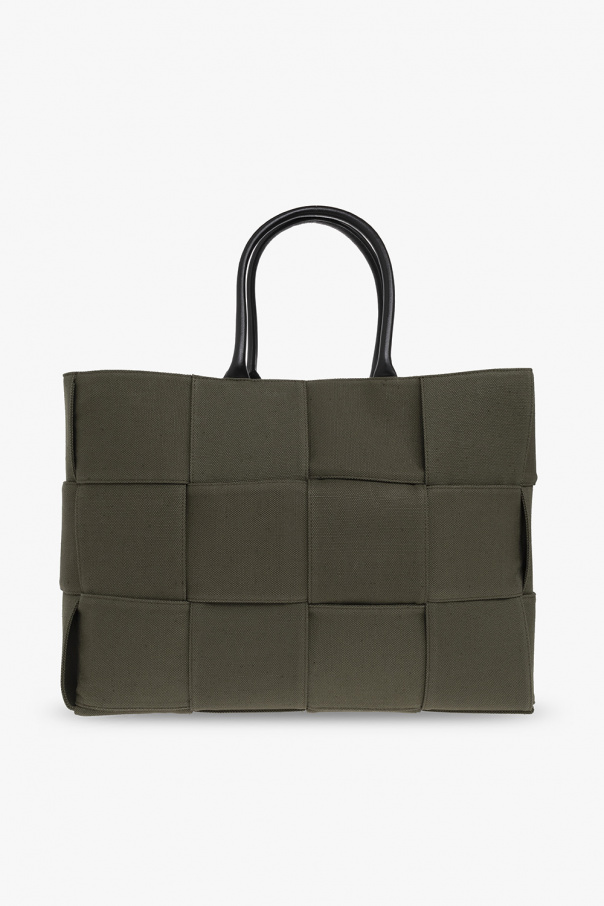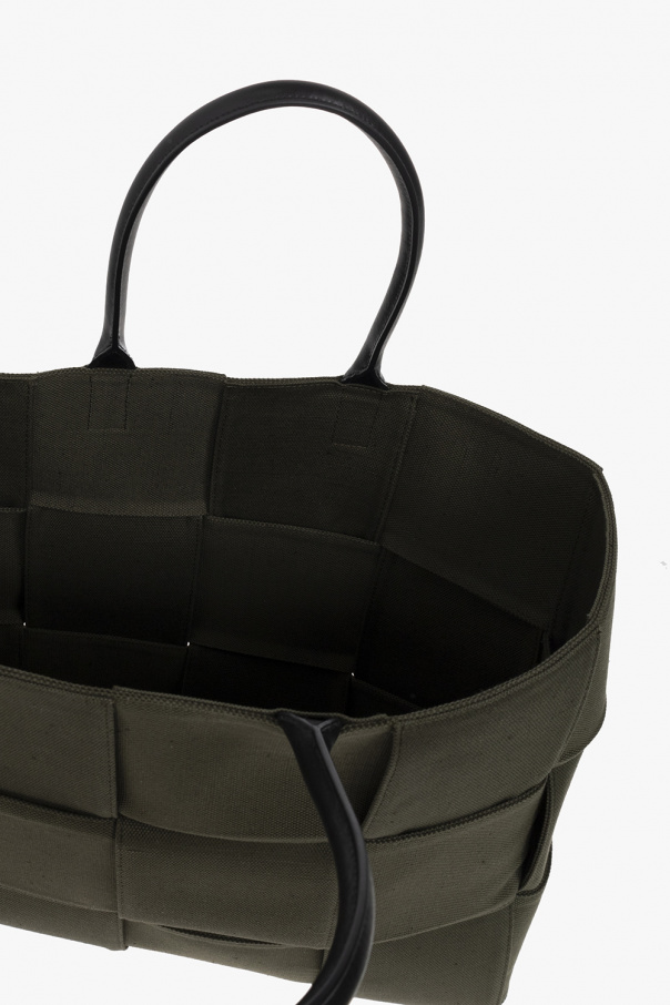 Green ‘Arco Large’ shopper bag from Bottega Veneta. Made of cotton and linen blend, this garment two half-round handles and one internal compartment with one zip pocket.