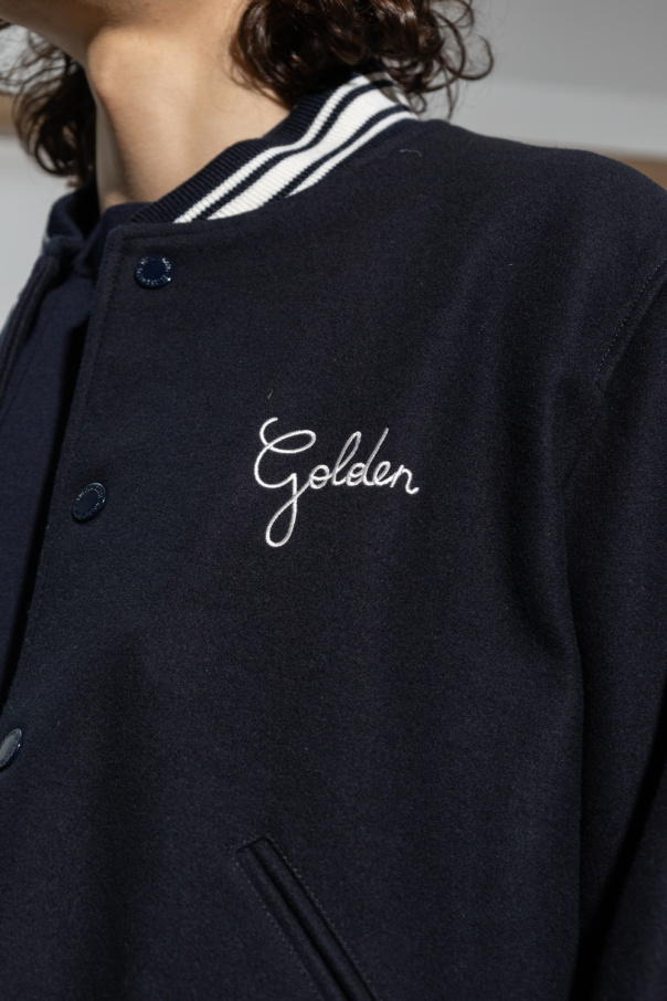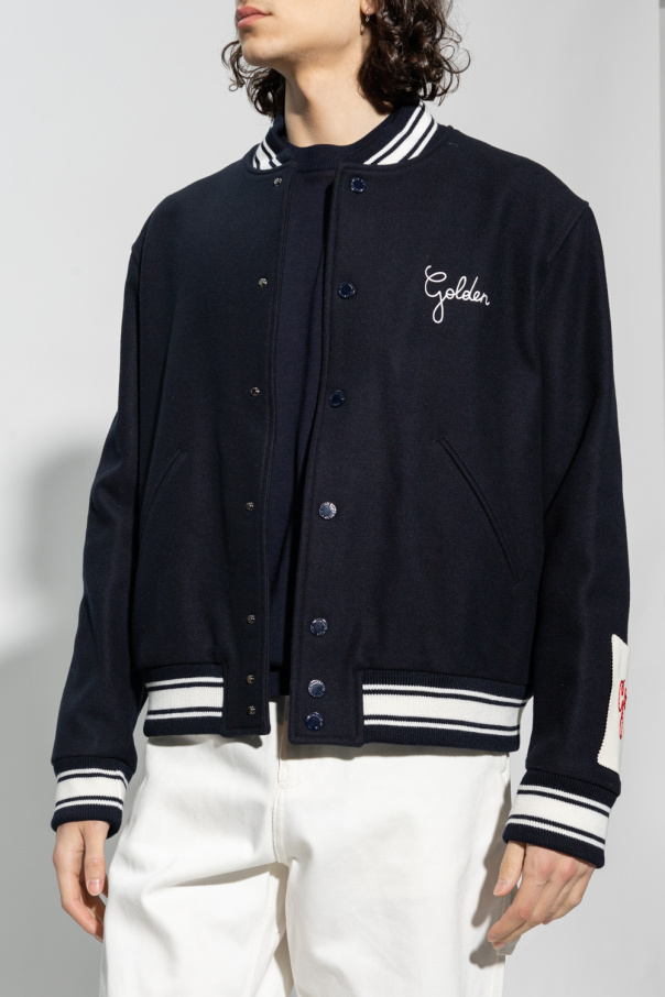 Navy blue jacket from Golden Goose. Made of wool, this style fastens with snaps and showcases a logo patch and elasticized trims on the standing collar, bottom hem and cuffs.
