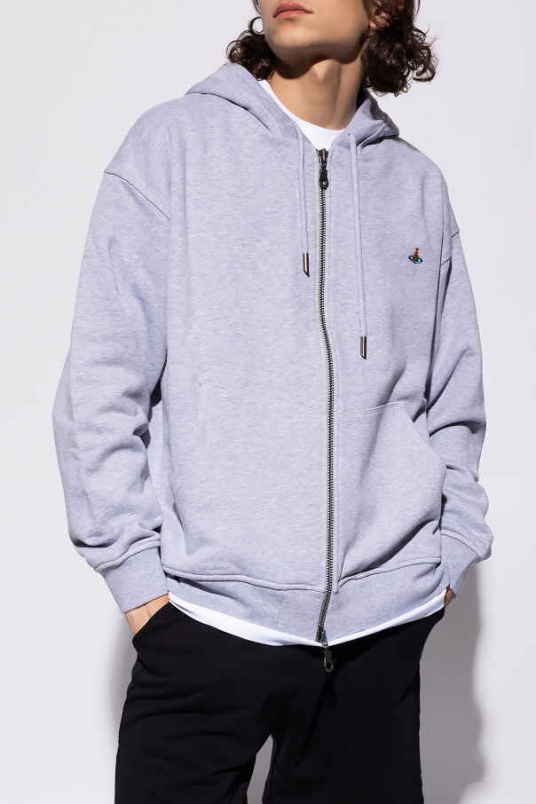 Grey hoodie from Vivienne Westwood. Made of organic cotton, this long sleeve design is complete with a multicolored logo patch, drawstring hood, two slip pockets and ribbed trims at the hem and cuffs.