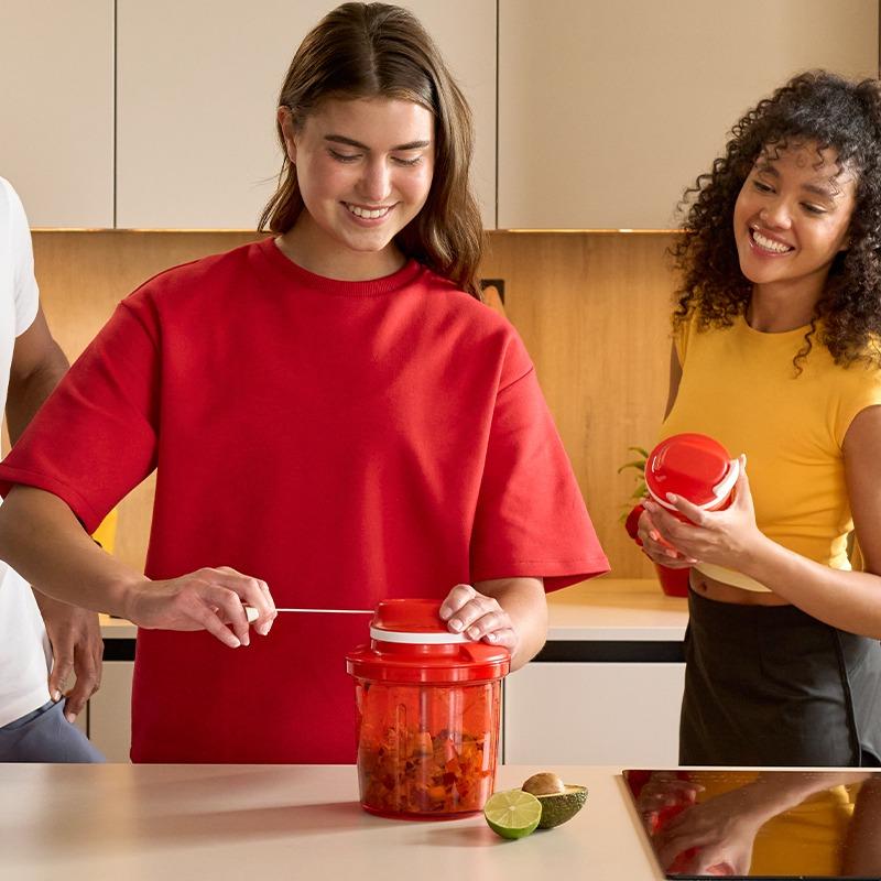 - Компактный размер Измельчителя идеален для приготовления соусов: измельчите лезвием вареные желтки, маринованные огурчики и укроп, смените насадку на взбиватель, добавьте оливковое масло, горчицу, лимонный сок, соль и перец, несколько движений - и готов нежнейший соус тартар.