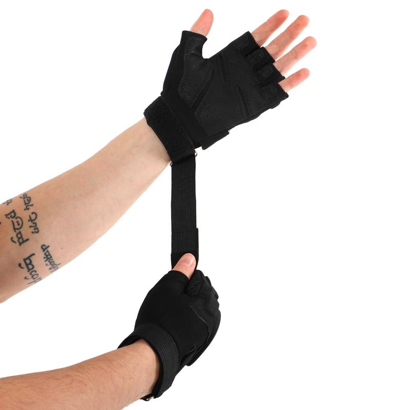 воздух. Тактические перчатки без пальцев закрепляются на кистях рук с помощью