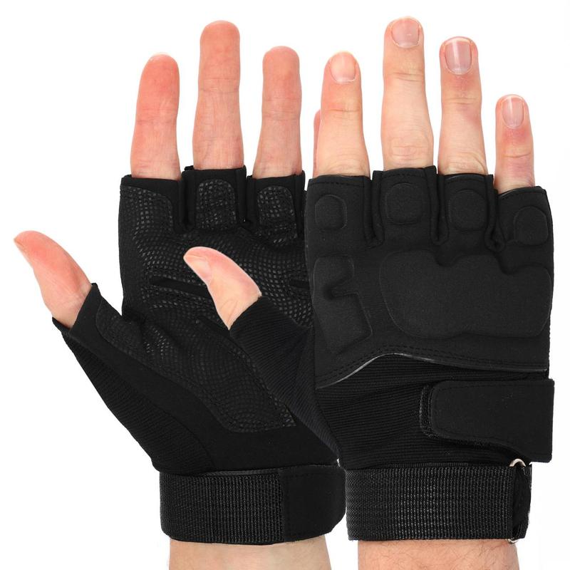 Тактические перчатки с открытыми пальцами черного цвета изготовлены из прочных