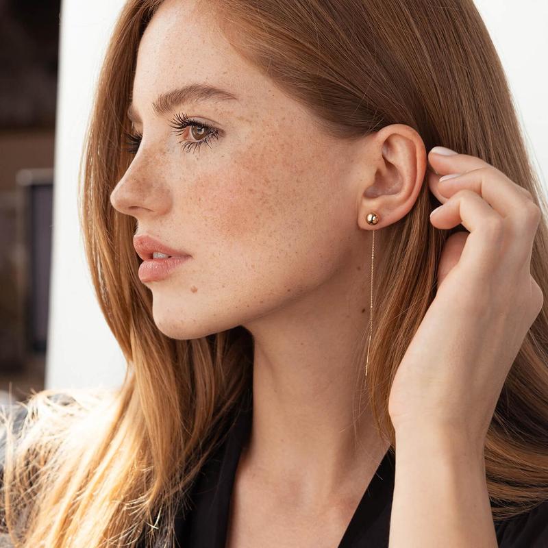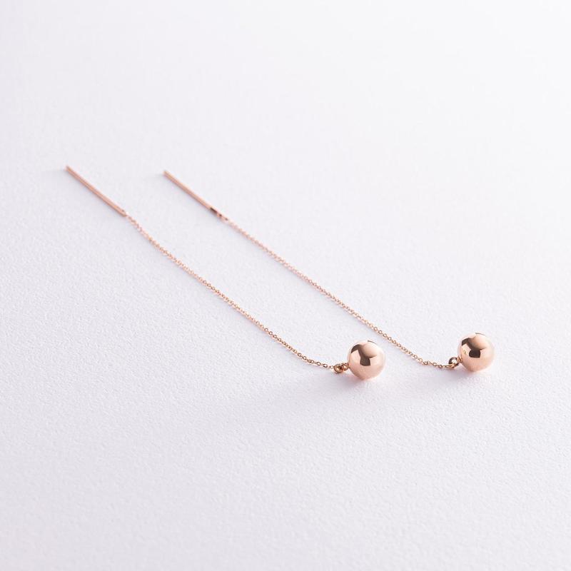 Золотые серьги - протяжки "Шарики" Металл: красное золото 585" Вставка: нет