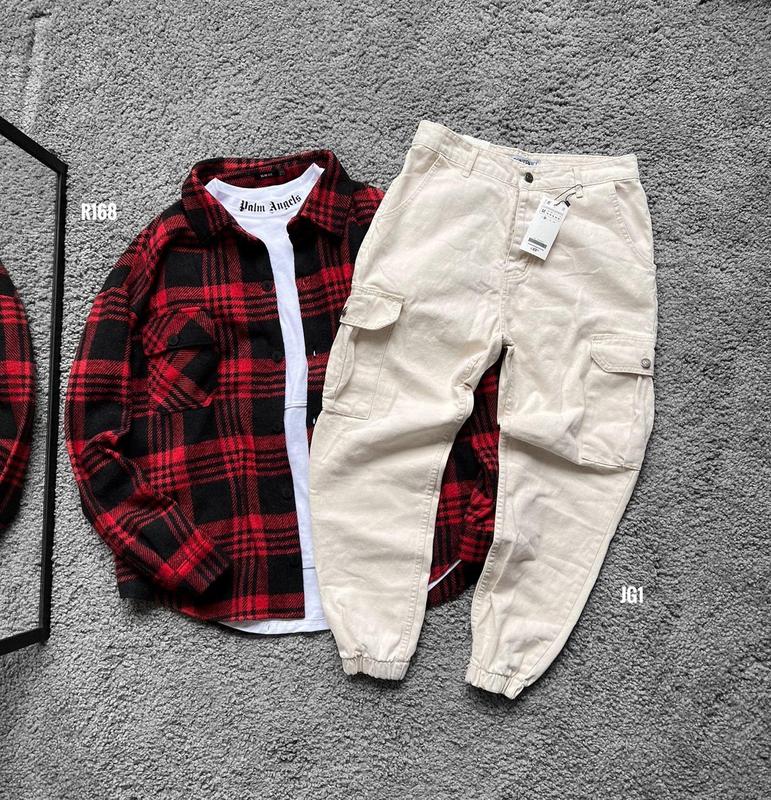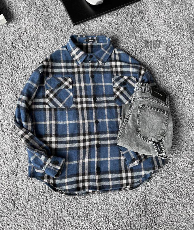 Мужская байковая рубашка оверсайз в клетку утепленная кашемир
