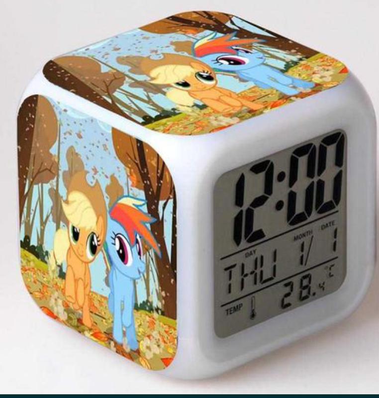 Часы-будильник хамелеон размер 8/8/8 см. Чрезвычайно эффектная и нужная вещь. Изменяет цвет, отлично смотрится в темное время. Термометр покажет температуру в комнате, а будильник не даст опоздать на занятие или желанное путешествие. Питание от 3-х батарей тип ААА (минипальчик) есть в комплекте.