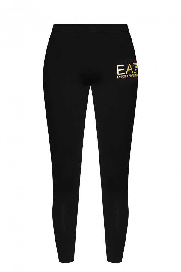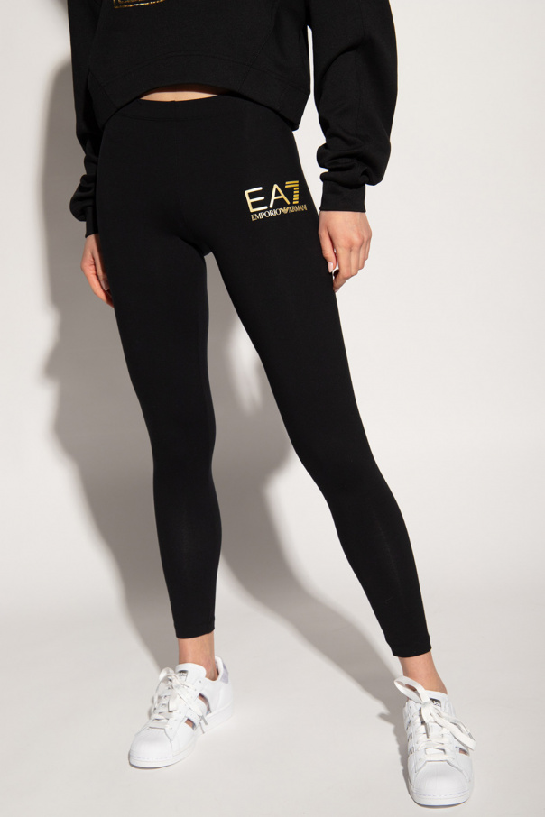 Black leggings from EA7 Emporio Armani. Made of cotton, this design features a gold-tone logo print.