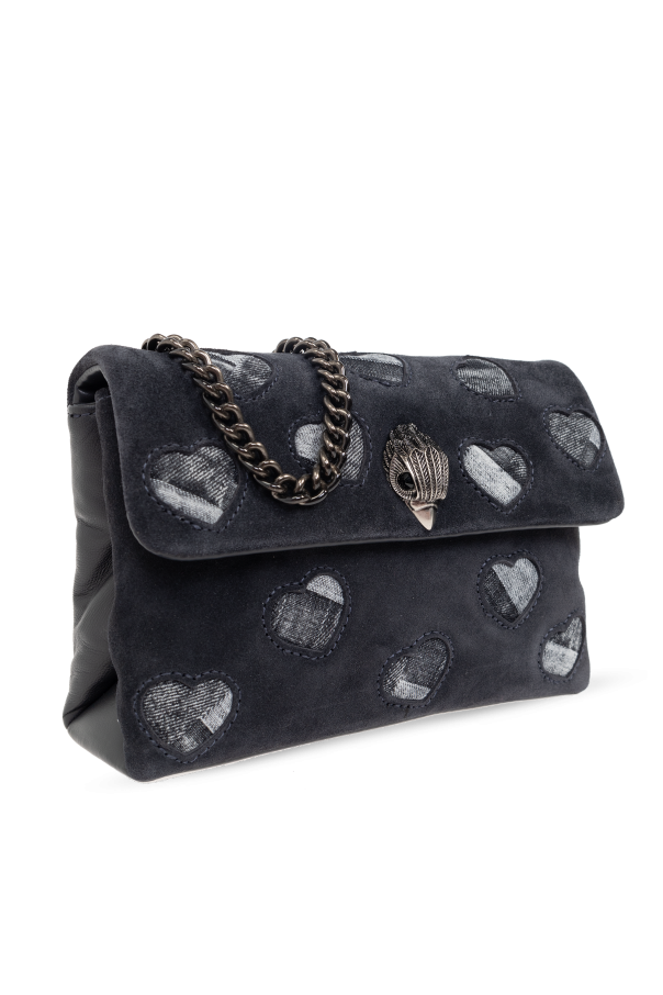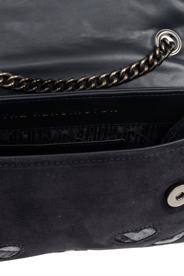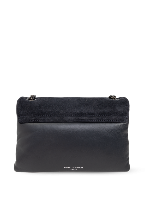 The MD Soft Kensington Love shoulder bag by Kurt Geiger exemplifies the epitome of luxury and finesse in accessory design. This compact masterpiece, crafted with a meticulous blend of materials, marries functionality with aesthetic allure. Its exterior, fashioned from 100% genuine leather, boasts a captivating pattern of hearts in a contrasting suede-like texture, making it a testament to sophisticated craftsmanship. The bag\'s classic rectangular silhouette with softly rounded edges is complemented by a front flap that ensures the security of your belongings while adding an element of sleek elegance. The distinctive metal logo, shaped like a heart adorned with leaf or wing-like embellishments and rendered in an antique gold finish, serves as a hallmark of the designer\'s attention to detail and a nod to the bag\'s exclusive lineage - THE KENSINGTON collection. A long, chain-link strap, matching the old gold of the metal accents, invites versatility in wear, allowing for a graceful transition from day to evening attire. The interior, lined with 100% quality fabric, features a dedicated compartment and a card slot, ensuring both organization and ease of access. The bag\'s closure, secured by magnetic snaps, further reinforces its blend of elegance and practicality. The bag’s black hue, complemented by smooth leather on the rear and vintage-finish metal elements, endows it with a timeless charm, making the MD Soft Kensington Love shoulder bag a quintessential accessory for those who covet exclusivity and sophistication. Why purchase this product? Exclusive design by Kurt Geiger, renowned for luxury and detail. Elegant blend of textures, including 100% genuine leather and suede-like accents. Unique heart-shaped pattern and metal logo with vintage finish for an unmistakable aesthetic. Versatile chain-link strap for multiple styling options. Compact and practical, with secure magnetic closure, compartment, and card slot.