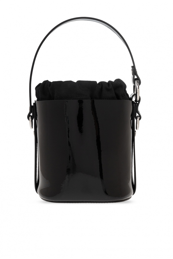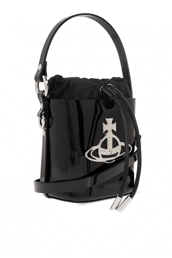 Black ‘Daisy Small’ shoulder bag from Vivienne Westwood. Crafted from patent calf leather, this model features drawstring fastenings, a metal logo appliqué, half-round handle, detachable and adjustable shoulder strap, one internal compartment and silver-tone metal hardware.