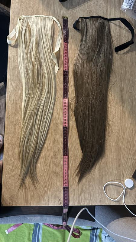Волосы не носила, потому что сделала наращенное натуральное. Так что два хвоста на заколке, есть линты которыми удобно фиксировать. Эти два хвоста из искусственных волос. Очень хорошее качество. Один - 175 грн. , если возьмете 2 отдачи за 300грн.