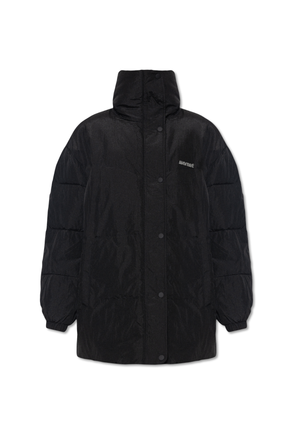 Black ‘Tilysa’ jacket from Marant Etoile. Crafted from recycled fabric padded with synthetic REPREVE® yarn made from recycled plastic bottles, this garment features a two-way zip and snaps, rubber logo patch, high neck, two snap-fastened pockets, drawstring hem and long sleeves with ribbed cuffs.