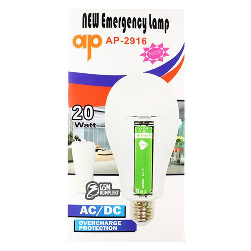Лампа аккумуляторная AP-2916 светодиодная E27 20 W 6800 К 20 W автономная