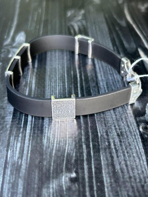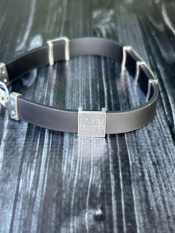 Браслет каучуковый с серебром Серебро 875 проба. Вес серебра 11.07 гр. Ширина