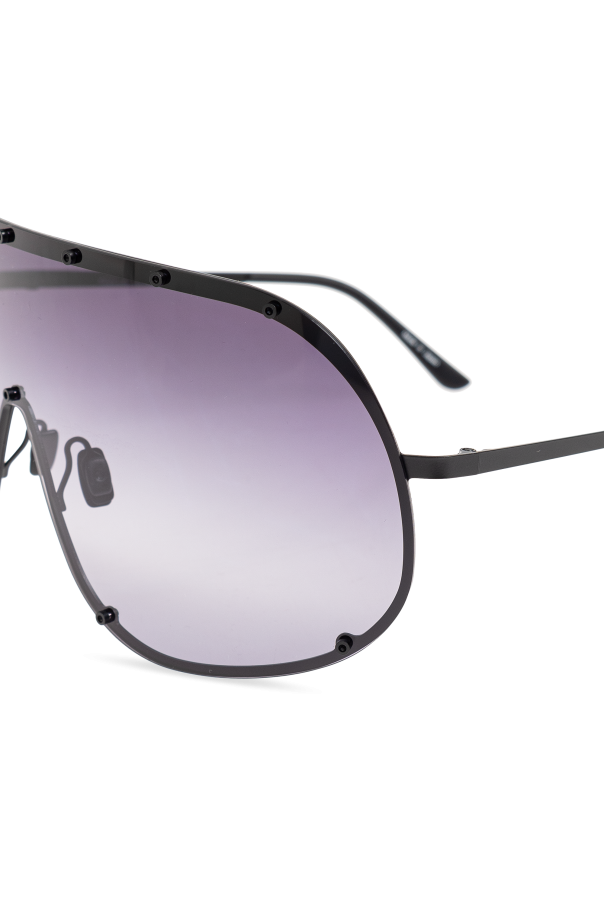 Introducing the exquisite Rick Owens Sunglasses from an exclusive collection, where avant-garde design meets unparalleled craftsmanship. These sunglasses boast a striking, streamlined silhouette reminiscent of a mask, exuding a futuristic allure. Crafted with thin, metallic frames, these sunglasses are as lightweight as they are stylish. The gradient lenses transition seamlessly from violet to gray, offering both UV and UVB protection while enhancing their enigmatic charm. Subtle screws at the frame\'s edges impart an industrial sophistication, further amplifying their uniqueness. Presented in an elegant black case, these sunglasses are a testament to Rick Owens\' unforgettable design ethos, making them a perfect accessory for both men and women. The dominant gray hues with violet undertones ensure a versatile match for any attire. Why Choose This Product? Exclusive design by renowned designer Rick Owens. Lightweight metal frames for comfortable wear. Gradient lenses with full UV and UVB protection. Unique industrial details for a distinctive look. Comes with a luxurious black carrying case.