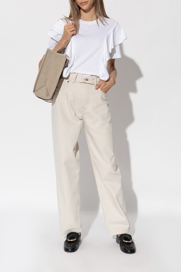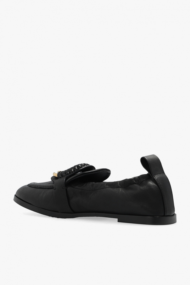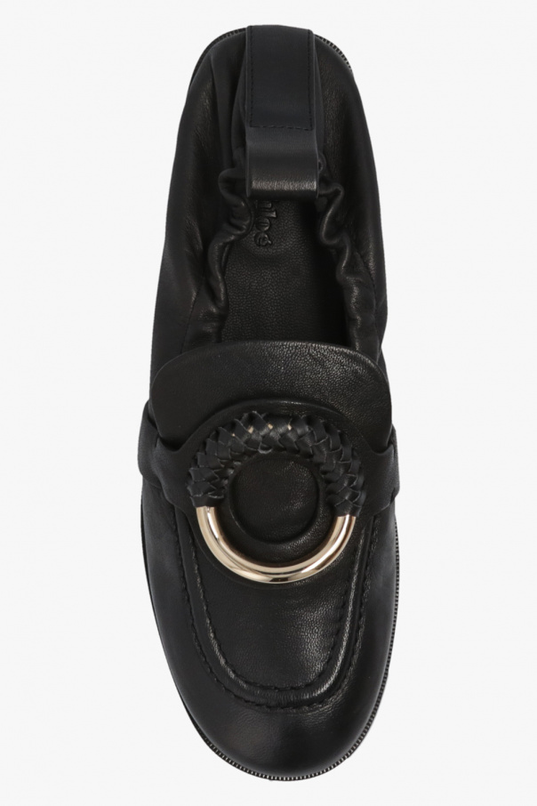 Black ‘Hana’ pumps from See By Chloé. Made of leather, this pair features decorative ring with braided leather, elasticated back and black rubber sole.