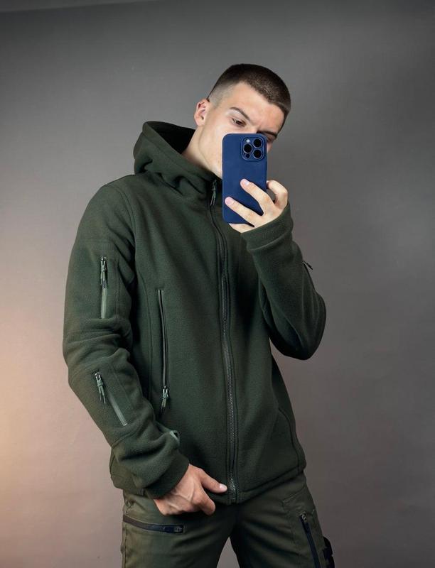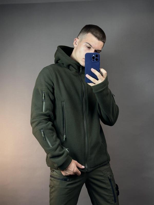Мужская кофта тактическая флисовая с капюшоном Толстовка на молнии с