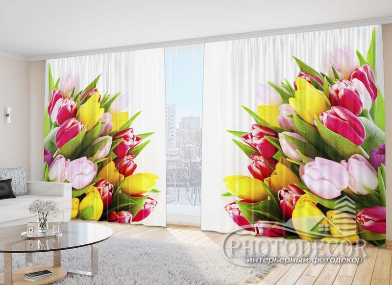3D Фото Шторы с Тюльпанами