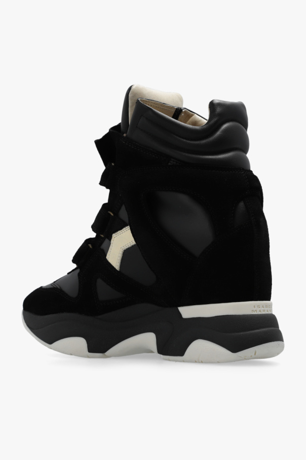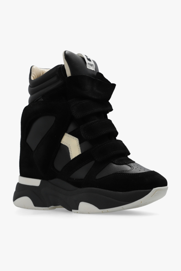 Black ‘Classic Balskee’ wedge sneakers from Isabel Marant. Made of leather, this pair features velcro fastening, logo patch on the tongue and rubber sole in black and cream.